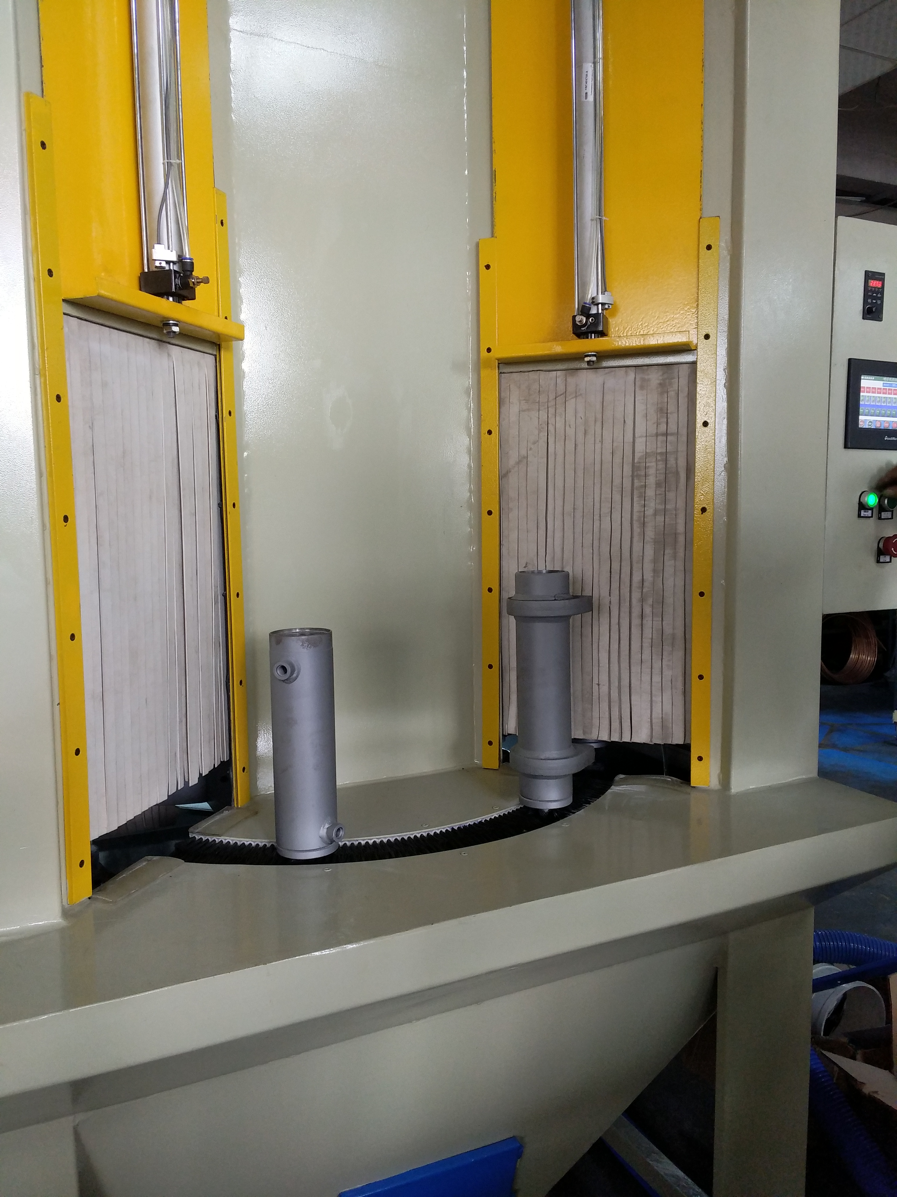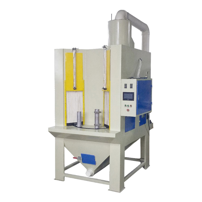 3、本轉盤機是針對回轉類加工產品依據夾具的制做及噴槍的位置,可一次性對產品的內外表面進行噴砂。